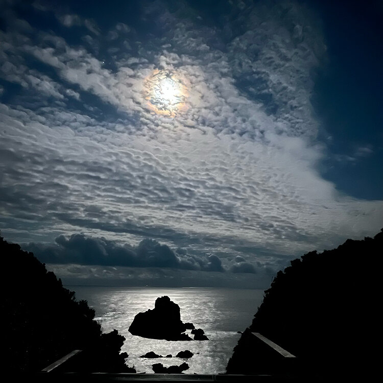 ぼんやり月も出ていて、海の上に浮かぶ小島が月明かりに照らされて幻想的でした✨