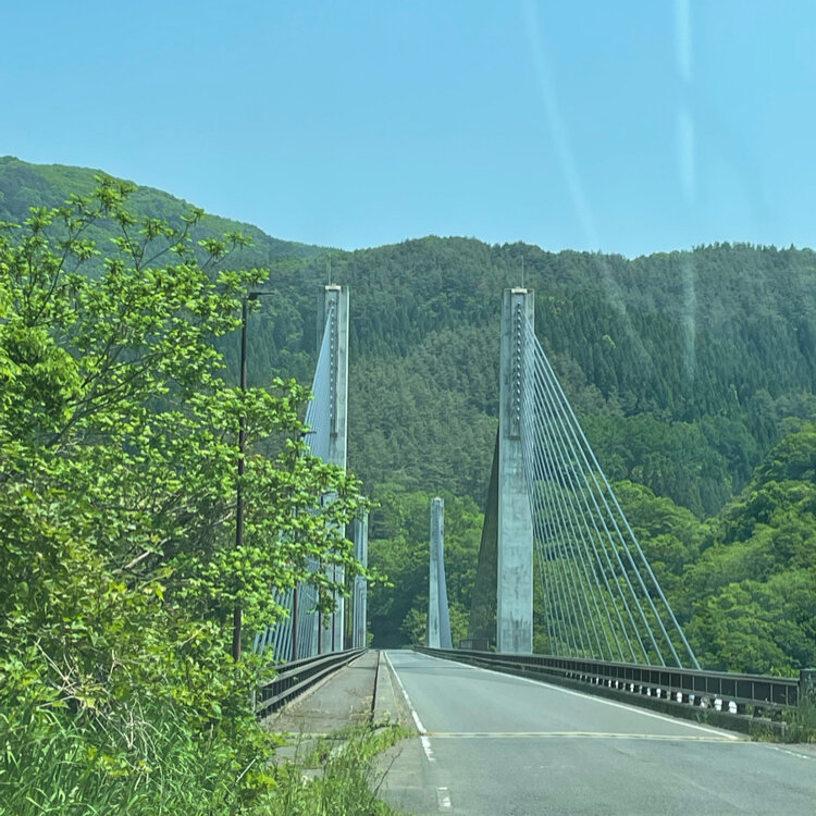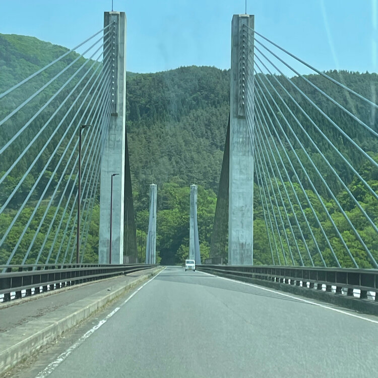 山の中を走っていると、突然出てくる立派な橋を車内からパチリ📷。人はもちろんのこと、車🚗もほぼ通らない場所なのに‥