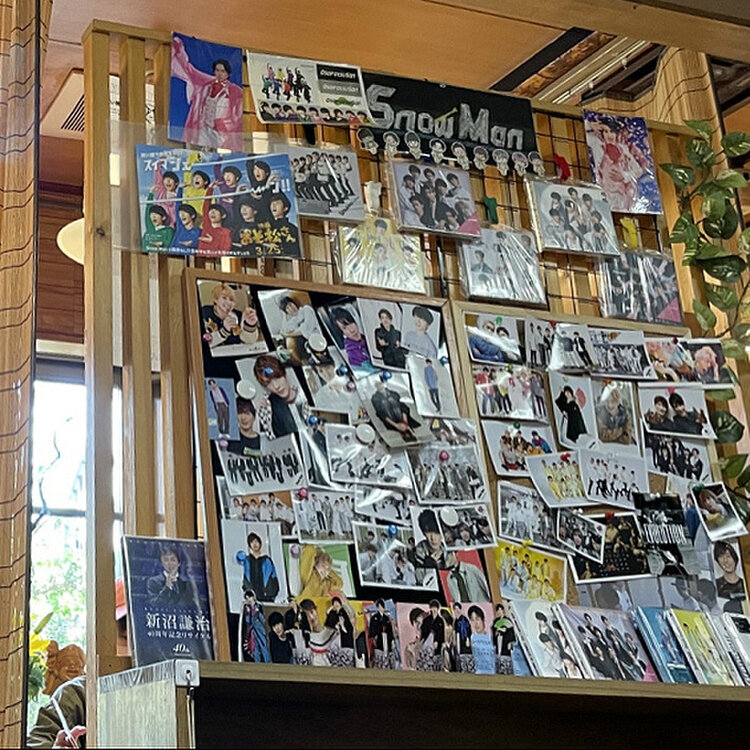 お店を訪れたファンの方達から提供された写真やグッズが飾ってあるSnow Manコーナーがありました🤭
