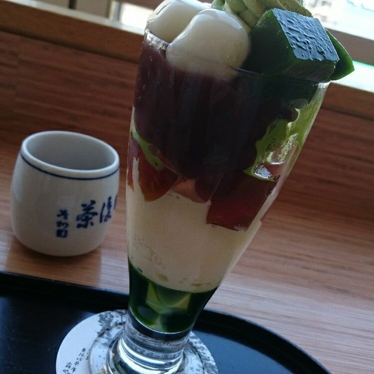 白玉あんみつは、抹茶みつをかけて頂きました😊