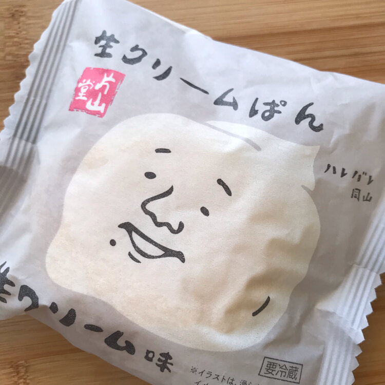 『ハレバレ岡山生クリームぱん』 ゆる〜いパッケージに惹かれますが 中身は美味しい生クリームパン、 冷やしコッペパンです。 種類はいろいろありましたが、好きなところを 生クリームと小豆の小倉味 けっこうなお手前抹茶味 ふわふわ生クリーム味 冷たいまま美味しく食べられます。 岡山の生クリームパンで有名な「清水屋」さんが 製造しているので、間違いない美味しさです。 ・ ・