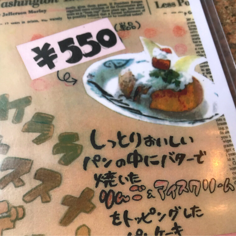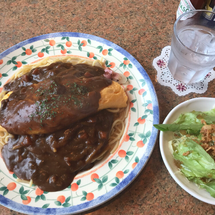 行く途中には弘前大学生のためのアパートがいっぱい!ここはメニューが豊富でフード、ドリンク、デザートがいっぱいメニューも手書きで可愛い💕一日目はオムレツスパ(ナポリタン、ホワイトソース、カレー)私はカレーにしました。