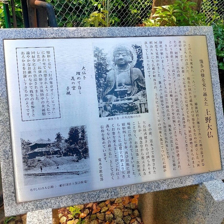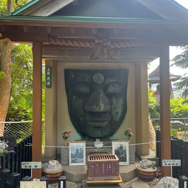 谷中ぎんざをてくてく歩くも、行きたかったお店は定休日ばかり・・・💦 のんびりてくてく、上野まで歩きました🙂 ここに来るまでに、ちょっと違う目的で寄り道したのですが、それは後からまた投稿しますね😊 そんなこんなで、上野公園までてくてく🚶‍♀️ そうだ、上野大仏を見に行こう❗️ 色々な事が重なってお顔だけになってしまった上野大仏。 なんだか物悲しくもあり、色々なことを経験されたためか優しく全てを諭してくれるようなお顔立ち。 なんだか心がギュッとなりました(´;ω;`) 上野大仏に行く途中の坂道に果物のようなものがなっている木を見つけました。 なんの果物なんだろう⁇ お化け灯籠も見れて大満足。 すごく大きくてびっくりしました🫢 #ヒーリング旅 #春風さんぽ #Myことりっぷ #上野大仏#お化け灯籠