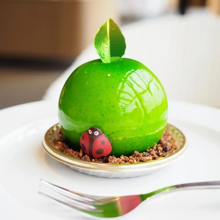 青りんごと紅茶の組み合わせ、シナモン風味のキャラメルクリームがアクセントになったケーキはムース仕立なの。