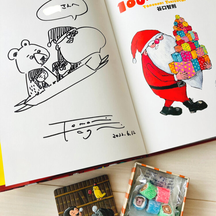 たくさんの絵本の原画が生で見られて、さらに買った絵本に谷口智則さんにサインをいただくことが出来ました✨