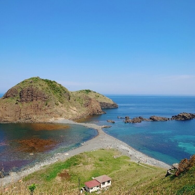 新潟 #佐渡島旅⚓︎【二ツ亀】 佐渡島で1番訪れたかった場所。 島が見えた瞬間、目の前に広がる絶景✨ 透明度抜群の日本海 二匹の亀がうずくまっているように見えることから 名付けられた島"二ツ亀" 潮が引くと砂の道が現れ、 島へ渡ることもできる幻想的な場所。 ミシュラングリーンガイドジャポンに二つ星として掲載。 . ちなみに『亀』は形だけでなく、アイヌ語で "神聖な島"という意味もあるそうです。 次は島へ渡ってみたいな…✨ . . 両津港→弾崎灯台→二ツ亀 ★両津港からは車で50分ほど。 ★佐渡最北端 弾崎灯台からもすぐです。 #佐渡島おすすめスポット🐤 #新潟#佐渡#佐渡島#島旅#二ツ亀#パワースポット#夏色さがし#海街さんぽ#ミシュラングリーンガイドジャポン
