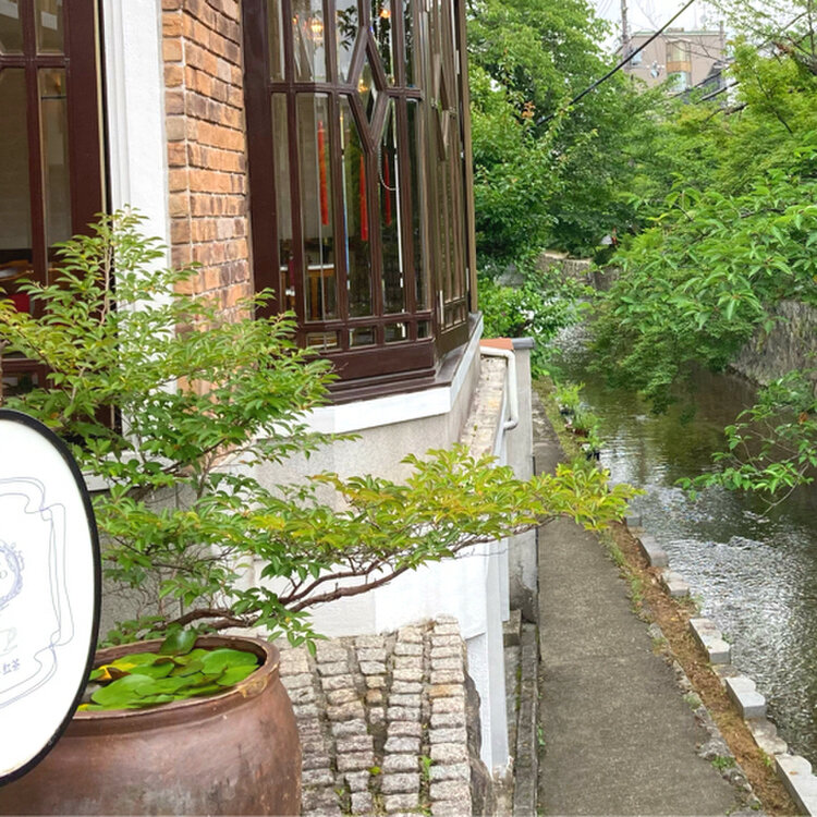 すぐ横を高瀬川が流れて緑に囲まれた落ち着いた雰囲気の喫茶店です🏡
