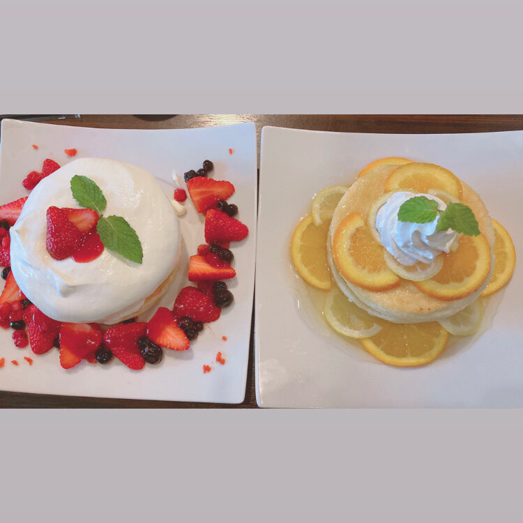 オレンジ🍊系のパンケーキが 食べたくて... さかい珈琲☕️さんへ行ってきました(^ー^) 主人はストロベリー🍓とベリー🫐