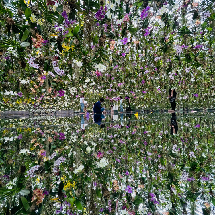 鏡や光の迷路でキラキラの異空間入り込んで上下左右を花に囲まれて…子供のようにはしゃいでしまいました😆💕