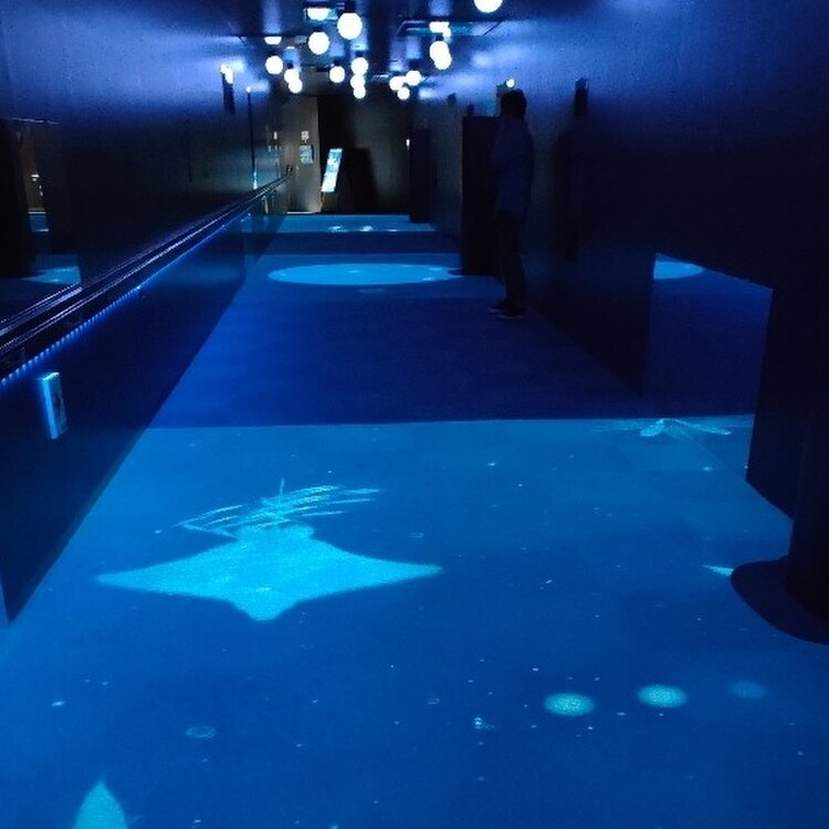 廊下にはプロジェクションマッピングが