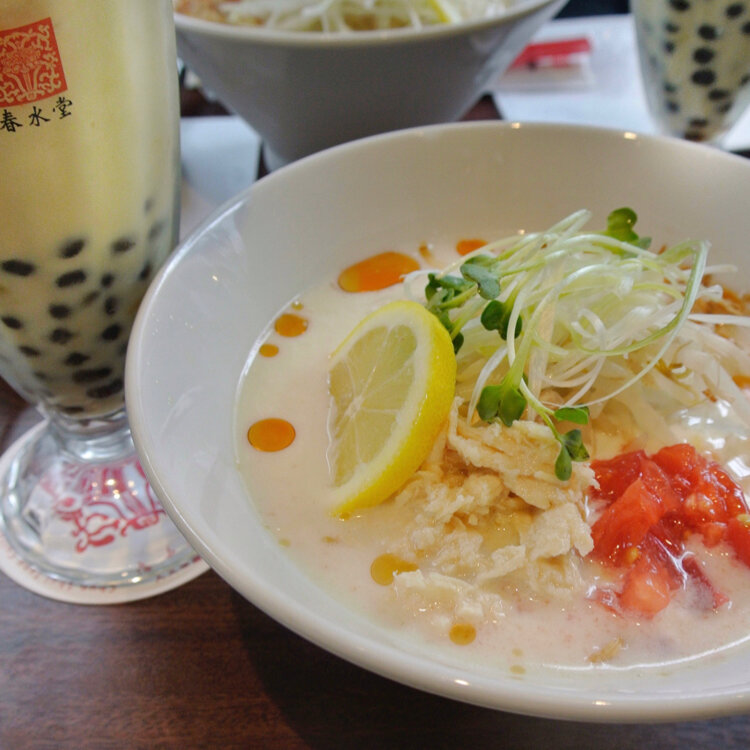 #春水堂表参道店 #春水堂 #タピオカミルクティー発祥の店 #タピオカマンゴーミルクティー #塩鶏豆乳スープ冷麺 #ランチ #Myことりっぷ #涼を感じる #原宿 #表参道 #東京