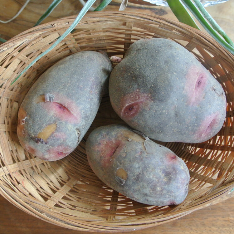 赤紫色の表皮と芽の周りだけ赤色に染まる姿が
