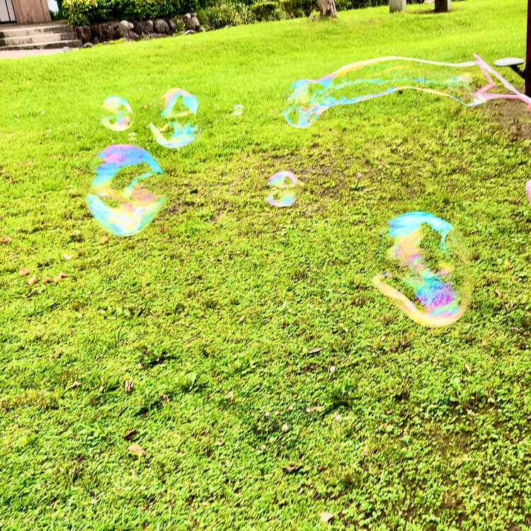 境内でシャボン玉を楽しんでいるちびっ子たち〜🎵