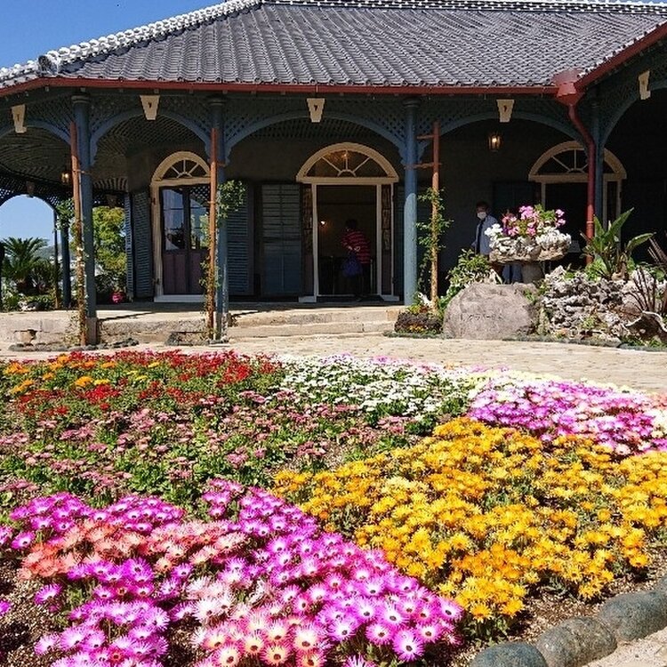 気持ち良い青空です。路面電車の終点「石橋」から、公共のエレベーターを使って一気に山の上へ。グラバー園の頂上入口から庭園に入って降りてきました。頂上の池には鯉。迫力です。グラバー園#長崎市#石橋