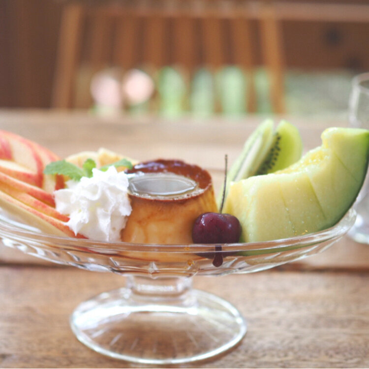 季節のフルーツが レトロなガラスの器に