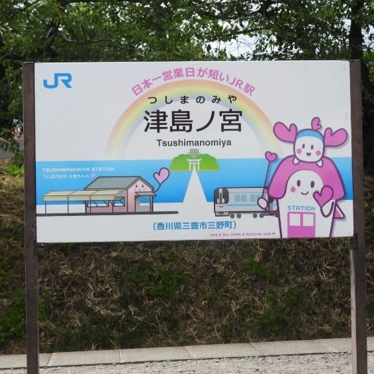 8月4日・5日の夏季例大祭のみ 開かれる 臨時駅 津島ノ宮駅 と、三豊市の津嶋神社