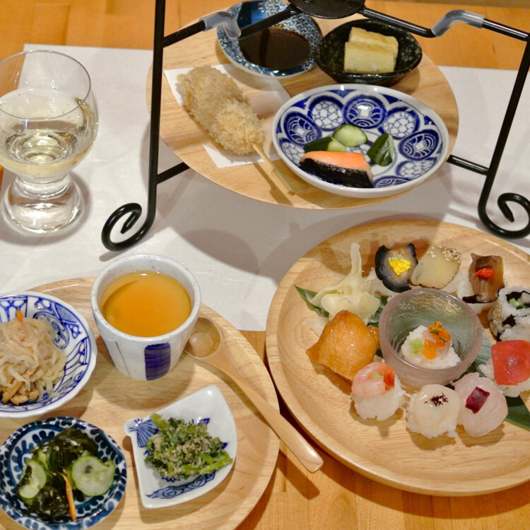 📷④一口サイズの可愛い手毬寿司は海鮮はもちろん