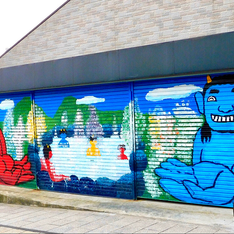 鬼さんのバス👹🚎やシャッターの鬼さんペイントが