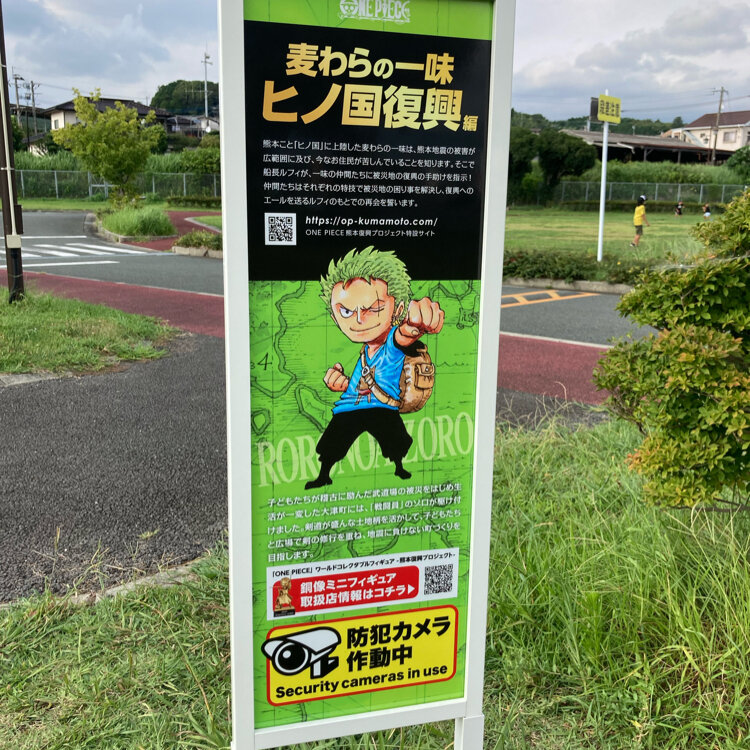 「ONE PIECE 熊本復興プロジェクト 麦わらの一味ヒノ国復興編」として、熊本県内の被災地に設置されている麦わらの一味の像👒