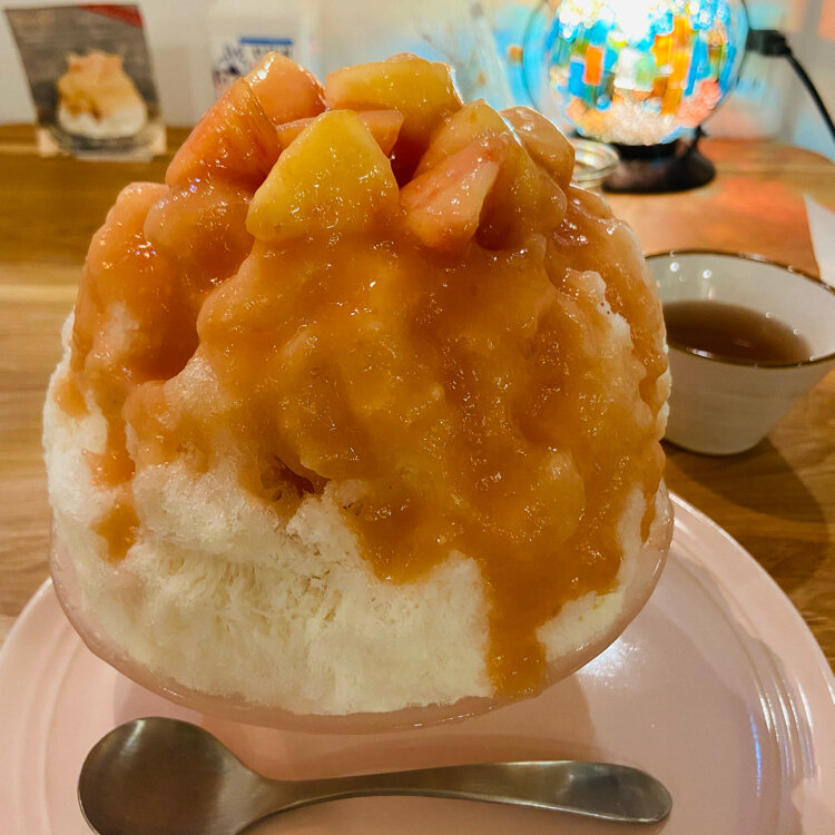 以前はボウルズっていわゆる丼ものとマフィンのお店だったと記憶してたけど、久しぶりに行ってみたら、かき氷とマフィンとカスクードのお店に。桃ミルクのかき氷はフワフワの氷にとろける甘さで優しい味のソース。セットの温かいほうじ茶にホッとします。他のメニューも気になったけど、時間が無く断念。