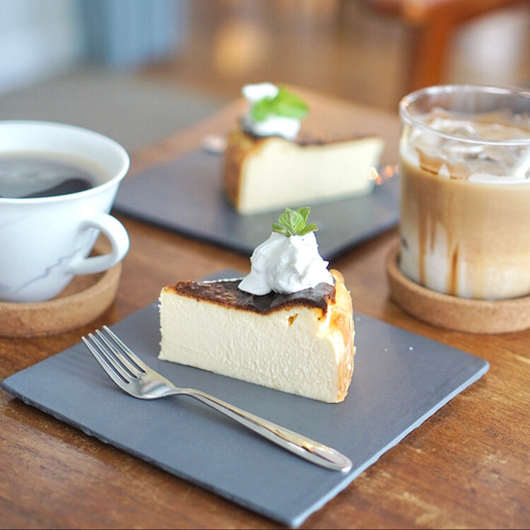 バスクチーズケーキプレートとコーヒーを