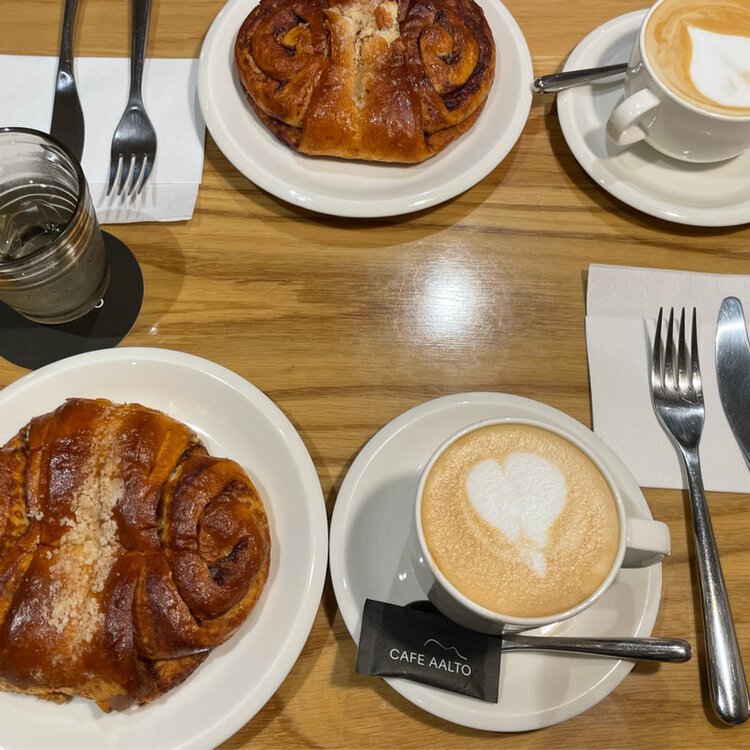 フィンランドにあるカフェアアルトの2号店。 おっきなシナモンロールとカプチーノでmorning☕️ 大好きなフィンランド🇫🇮 行ったことはないけど、世界観がそのまま。 カルダモンが効いたシナモンロール。 美味しかった。。