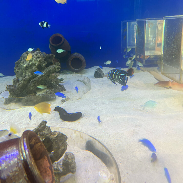 魚に餌やりができる道の駅☻ 初めて愛媛の夫の実家へ来た時に、義父が連れてきてくれたところ。 昔はハリセンボンが居たんだけど。。熱帯魚ばっかりになってた!!! 映えなの? 2階はプロジェクションマッピングで巨大水族館が味わえます☻