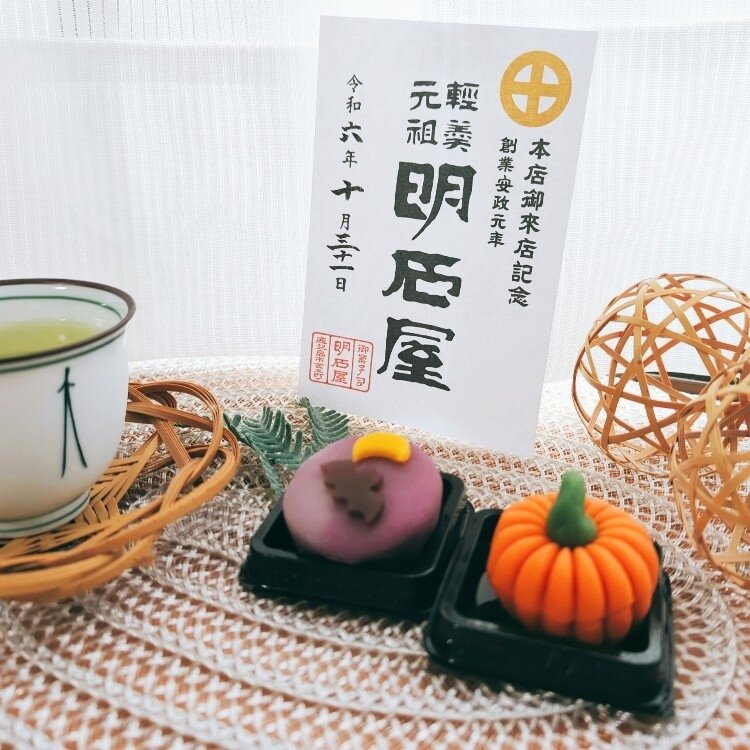 明石屋 本店 ハロウィン限定上生菓子🎃👻 そして本店でお買い物をしてお願いするといただける「御菓印」 御菓印とは:全国の老舗和菓子屋が趣向を凝らして作った御朱印 いつも素敵な投稿をするfumitubuさんから、鹿児島でもいただけるお店があると教えてもらい寄ってきました😊 ありがとうございます♪ 鹿児島県は、明石屋だけです。 御菓印を扱っている全国のお店の一覧がネットで調べられるので、旅行先や帰省した時にいろいろ集めたくなります😊 #明石屋 #ハロウィン限定 #ハロウィンナイト #ハロウィンパンプキン #生菓子 #御菓印 #老舗和菓子屋 #鹿児島市 #秋の彩り