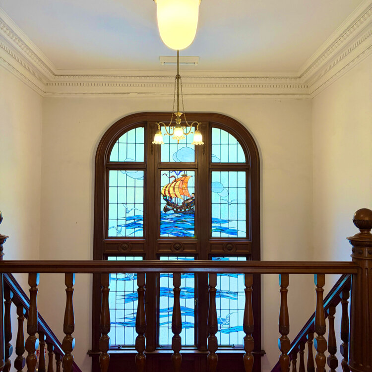 ステンドグラスが素敵なアール・ヌーヴォー建築 #愛媛#松山#萬翠荘#旧建築#建築美#建築#アート 1922大正11年に建てられた 松山藩主の子孫、久松伯爵のお屋敷 ステンドグラス、シャンデリア 階段、暖炉、カーペット、窓 そして鱗瓦の屋根 フランス風建築 アール・ヌーヴォー とても素敵なお屋敷でした。 #muuの松山散歩 #建築巡り #階段の世界