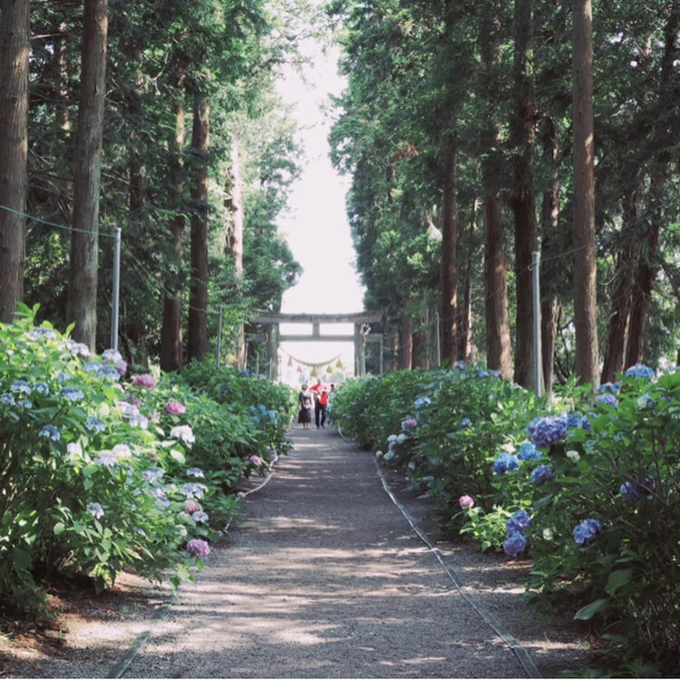 栃木の磯山神社のあじさいまつり 参道に立ち並ぶ木々と紫陽花がとても美しい神社でした。 御朱印も可愛らしく、集めている方には是非行ってほしい神社です。