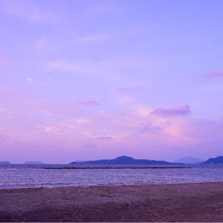 萩に泊まった日、夕食まで時間があったのでホテルの前の浜辺を歩きました。どんどん夕陽が落ちていき、橙色や茜色から紫色に刻々と変化する空と、静かに打ち寄せる波がとても綺麗でした。