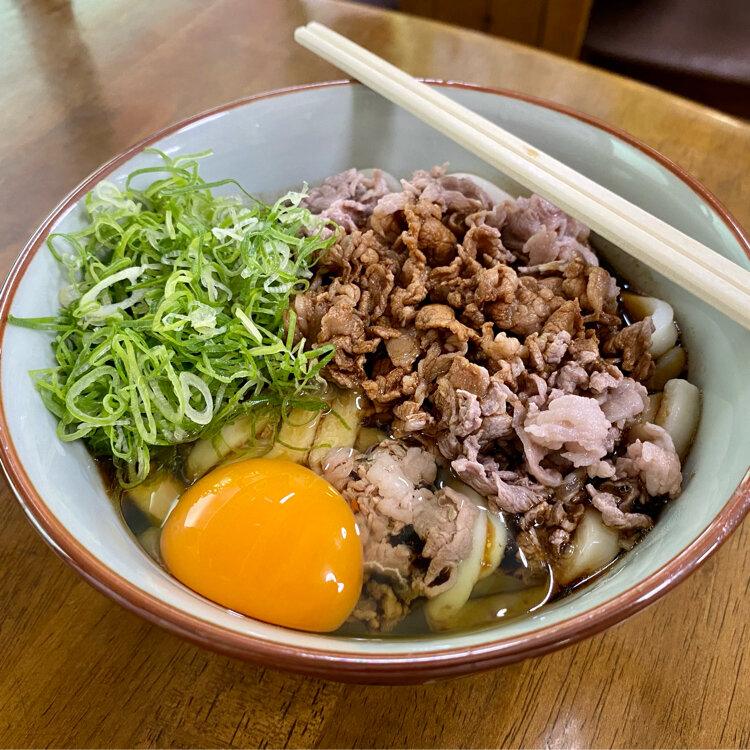 肉伊勢うどんと、月見伊勢うどんをチョイス。