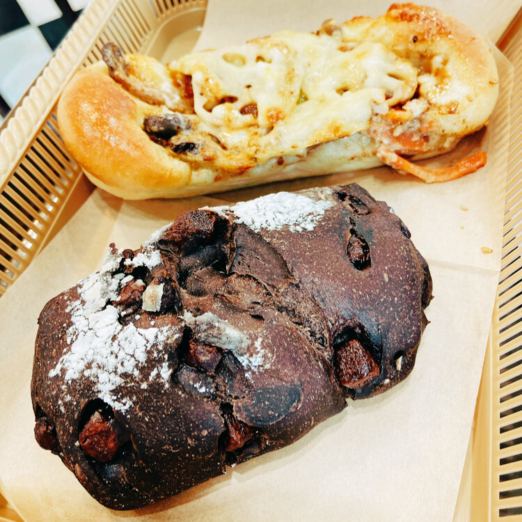 柏駅南口にあるパン屋さん🍞美味しいパンがたくさんで、いつも選ぶのに迷ってしまう! 今回はチキンと根菜(ごぼう、にんじん、レンコン)ときのこが入った惣菜パンを初めて食べたけど、たっぷり具材がのっていて満足感がすごい! #柏市 #パン屋さん
