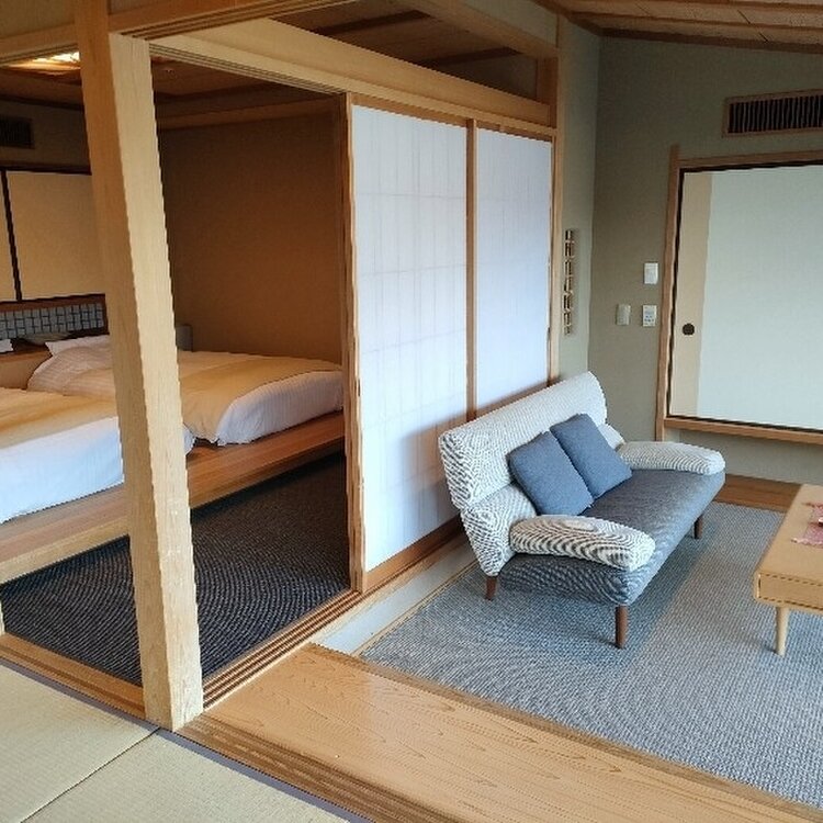 12畳の畳のお部屋、ソファのある洋間、寝心地良いベッドの寝室と2人には広すぎるほどの室内でしたが、手足を広げて久しぶりに畳に転がるのはとても気持ち良かったです。