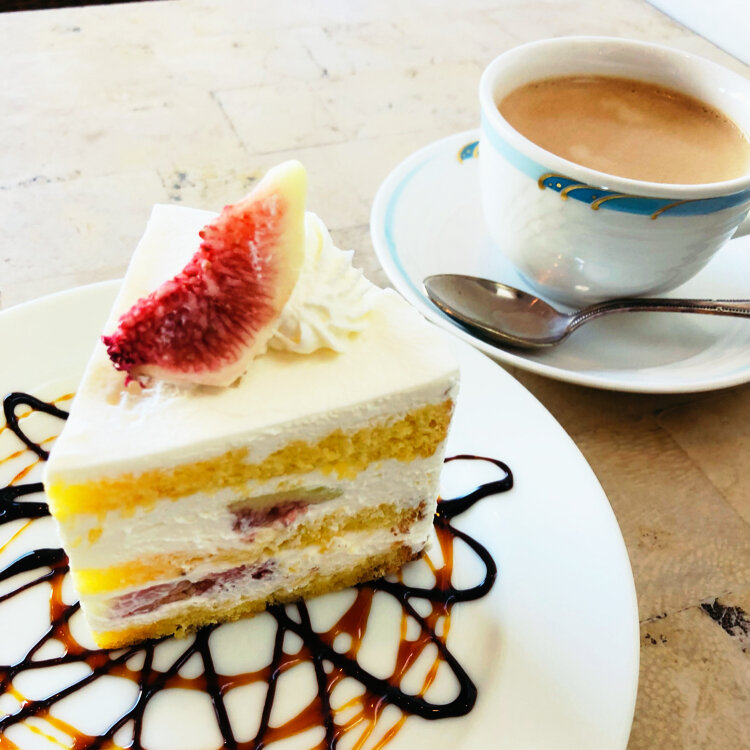 コロナ明けの初ムルソー😊 相変わらずの素敵な空間で安心しました。 写真はフルーツショートケーキ(今日は無花果)です🍰 #浅草#カフェ#ムルソー#隅田川