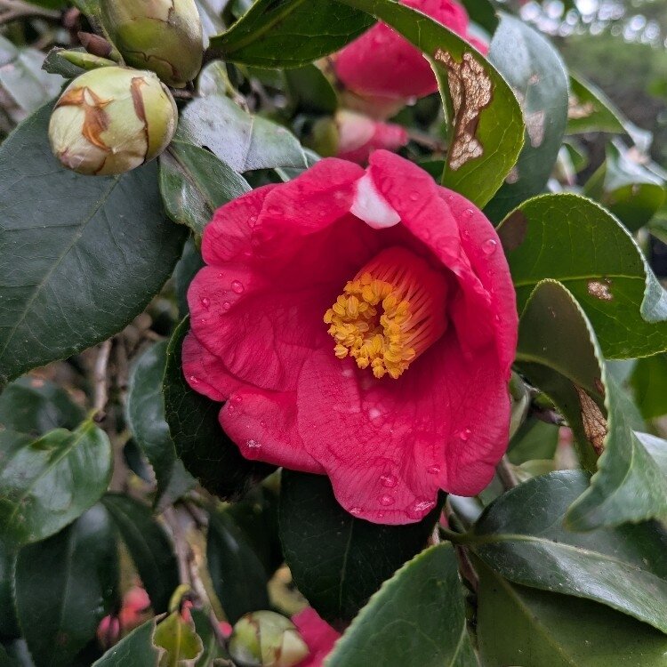 3月31日訪問③。 雨露に濡れた椿が素敵✨