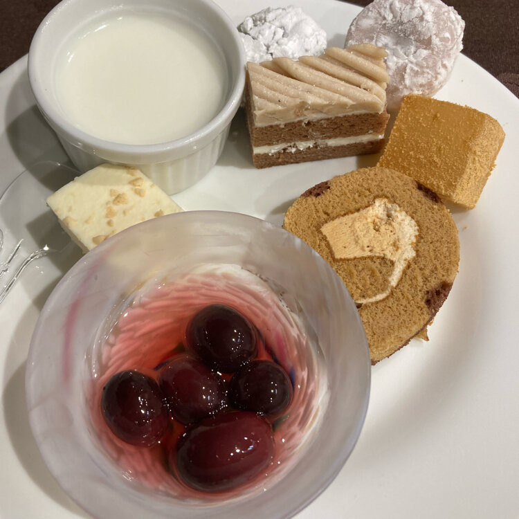 ビュッフェスタイルの夕食。美味しかったよ♡ せっかく岩手まで来たのだからと、普段は飲まないお酒も頂いちったよ😆 おしるし程度にいただいて、そそくさと甘物に移行。ご飯も美味しそうだったけど、もう食べられないので明日の朝のお楽しみ😊
