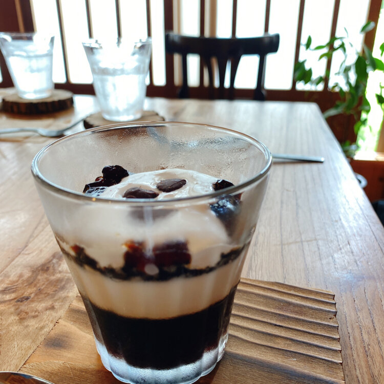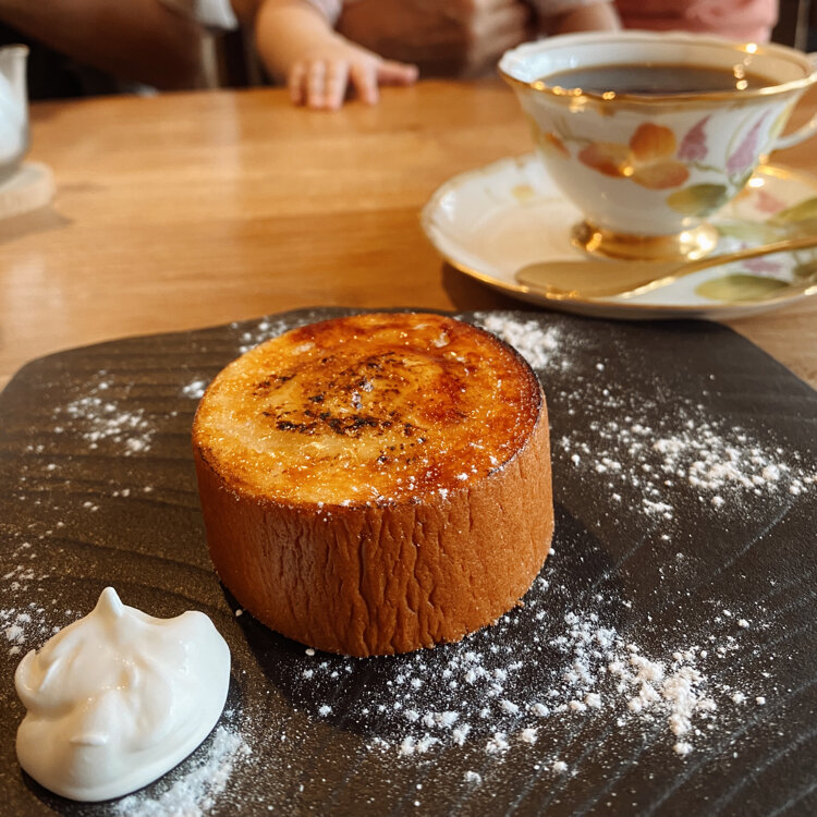ぴゅあ樹 光(ぴゅあバーム 光』さんへ🌲 ブリュレされたバームクーヘン コーヒーゼリー をいただきました☕️ しっとりなめらかバームクーヘンで美味しかった〜✨ コーヒーゼリーもパンナコッタと2層になっていてさっぱり♬ 店内のインテリアや木の雑貨などがとても可愛くて心地良い空間です。