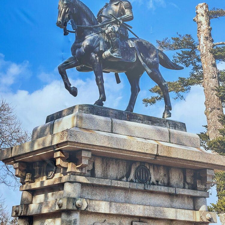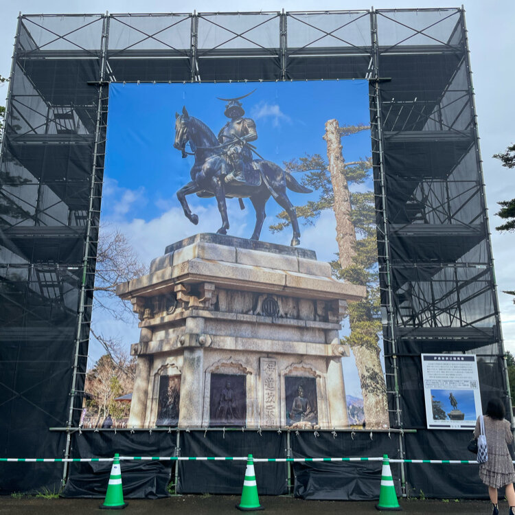 東北の旅4 仙台城跡 伊達政宗公騎馬像がある仙台城跡 だがしかし修理中でした‼️(笑) 二枚目をご覧になってね、修理中😅 以前北海道に行った時も時計台が修理中(笑) なんか、外し運なんでしょうね、私😆 まぁいいや、こんなところで運を使い切ってはいけないと気持ちを切り替え😆 またいつか政宗公を仰ぎにこようと誓いました✨✨