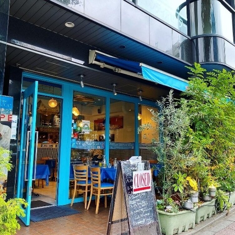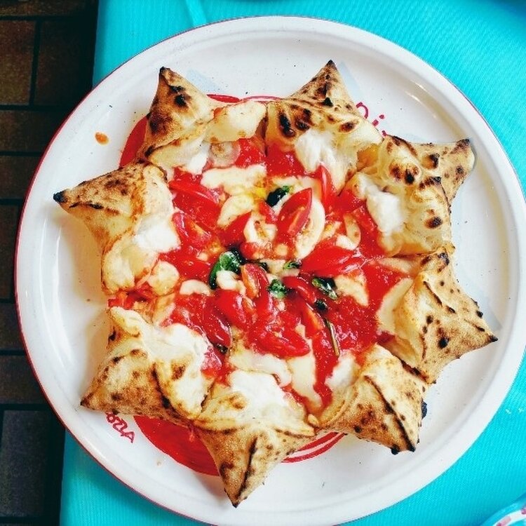 白と青を貴重としたお洒落なイタリアンで看板メニューは星型のピザドンサルヴォです☆✨酸味のあるトマトにもっちりモチモチの生地は冷めても最後までずっとおいしかった〜(๑´ڡ`๑)🍅