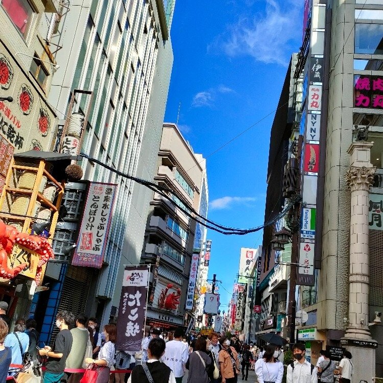 昨日の道頓堀は凄い人、人💦😅 でもふと空を見上げると素晴らしい秋空でした💙