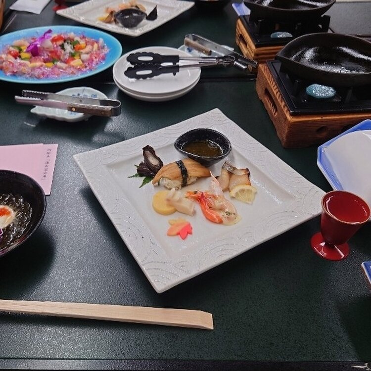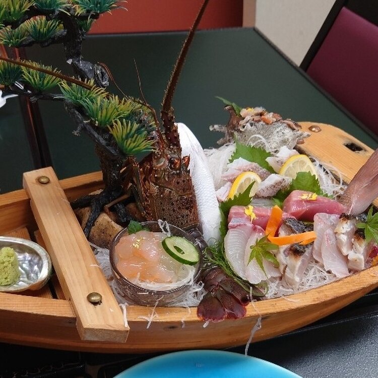 鳥羽旅行④ お宿での夕飯 久々の舟盛りにテンションアップ⤴ 伊勢海老・伊勢まぐろ・さざえ・松皮鯛など… どれも新鮮で美味しかったです! 鯛の香草蒸しは旅館の名物料理だそうです。 鯛は南伊勢町産、わかめは鳥羽産との事。 とても美味しかったです☺ 「伊勢海老の黄金焼き」「鯛めし」写真撮り忘れました😂 美味しいものでお腹いっぱいになるって幸せ〜🍀 #私のことりっぷ2022 #Myことりっぷ #リゾートヒルズ豊浜 #相差 #舟盛り #伊勢海老 #お造り