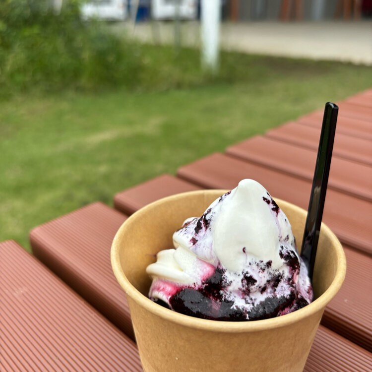 旦那の洗車を手伝った後、今日は暑いので手賀沼すぐ近くの道の駅しょうなんへ、気になっていたソフトクリームを食べに来ました🍦