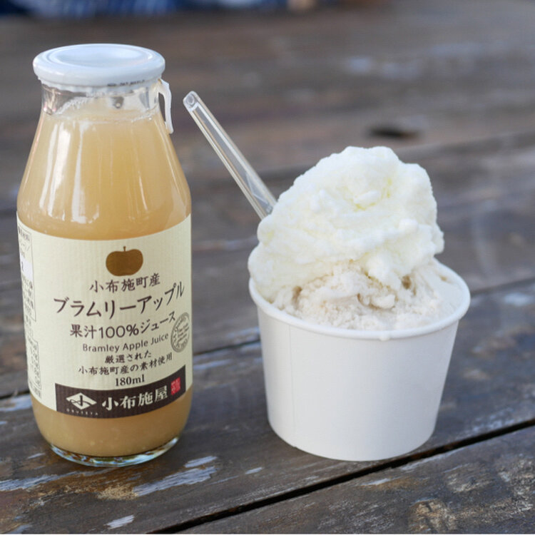 小布施町のりんご、ブラムリーアップルジュースとミルク&栗アイス🍨