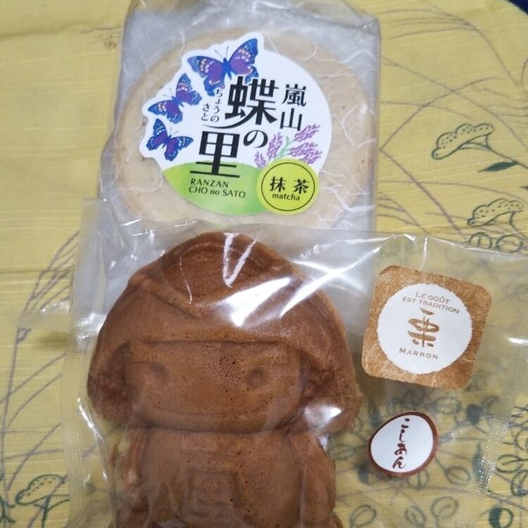 高さ10cmのでっかい人形焼き、頭と胴体に一粒ずつ栗🌰が入っています。秋限定なんですって‼️ (こしあん)