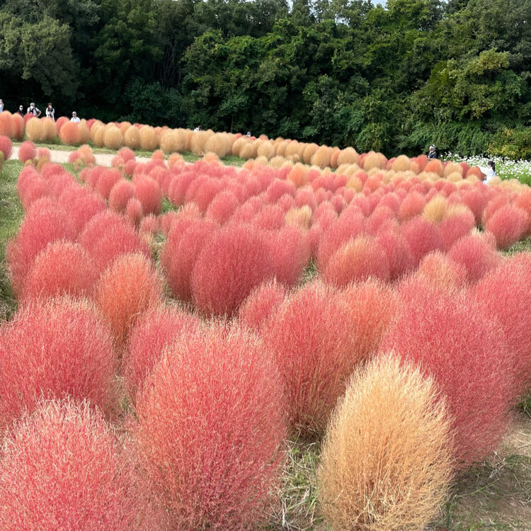 今年の花の丘はコスモスだけではなく、モコモコ姿が愛らしい「コキア」約4,000株の紅葉が見られ、素敵ユーザーさんのお写真にキュンとしていました。