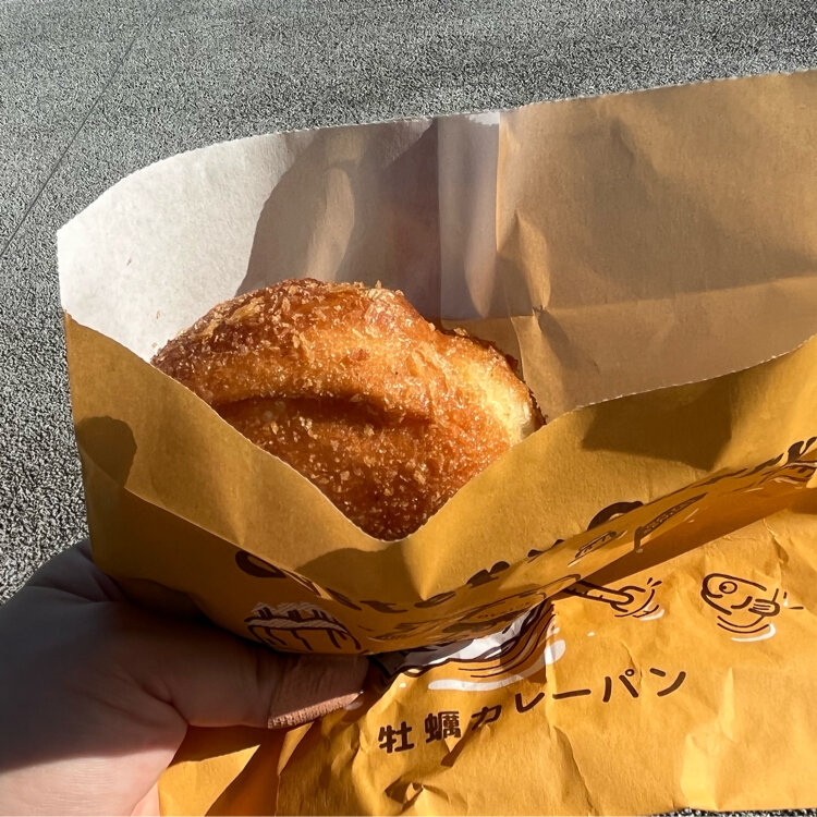 牡蠣カレーパンは結構大ぶりの牡蠣が2個入っていて、食べる前は生臭くないかなぁ⁇と少し心配しましたが、カレーのスパイスでそんな心配も吹き飛ぶ美味しさでした😋