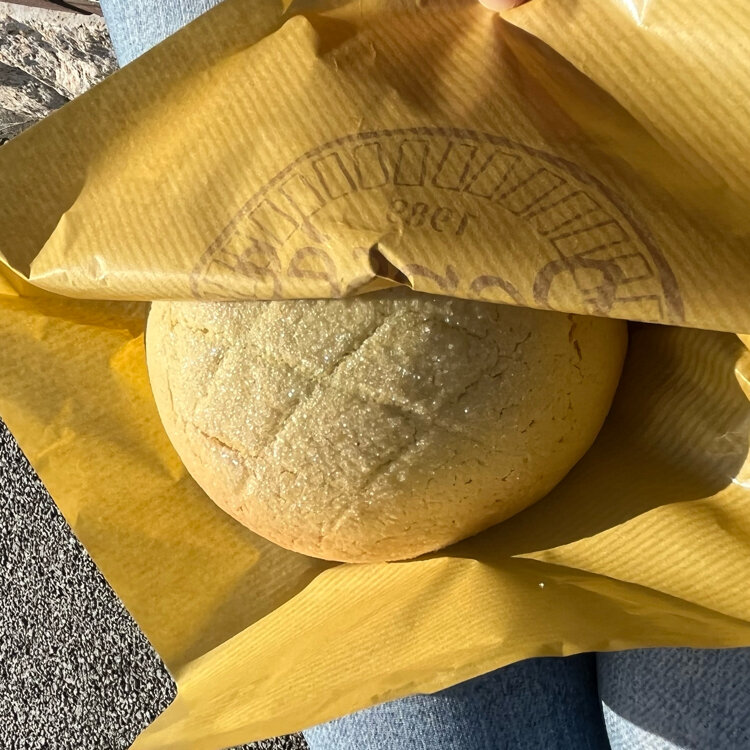 見た目は小ぶりで可愛い黄緑なメロンパンだけど、こちらは見た目よりもずっしりな感じ😋