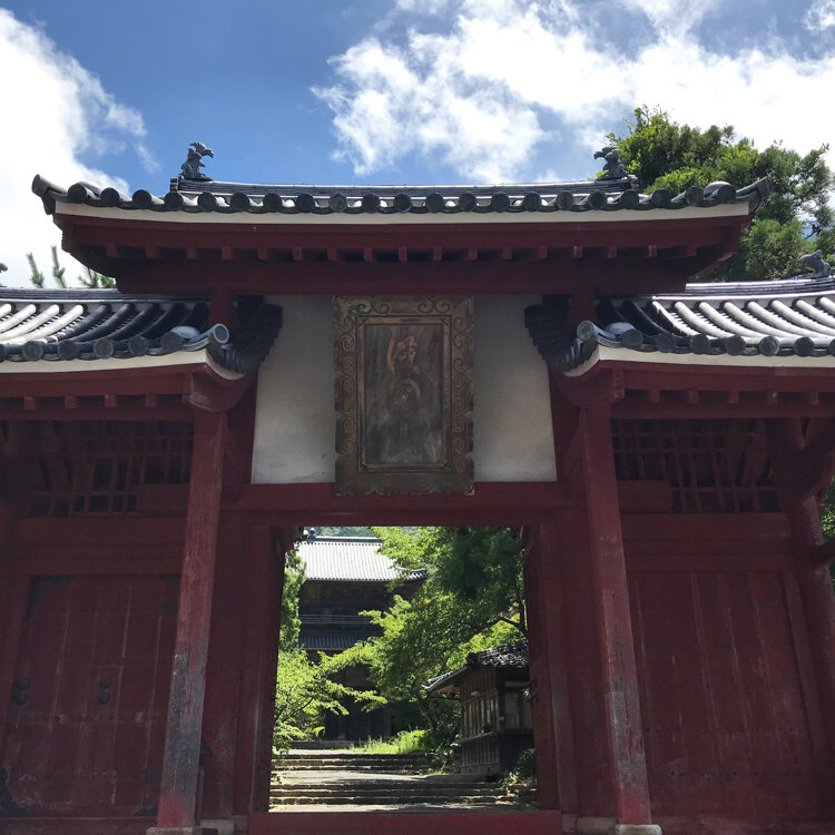 このお寺には国の重要文化財も多数あり、この立派な三門もその先に見える総門も指定されています。威風堂々とした佇まいの門の先に見える朱色の門と木々の緑が美しく印象的でした。