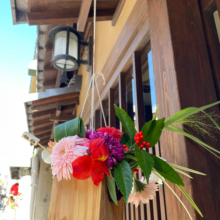 ちょこっと京都 「先斗町軒下花展 このまちに、花」 ② 先斗町は、千鳥マークのちょうちんが揺れる細い道の両脇に、昔ながらのお店や新しくオープンしたお店が並ぶ、京都五花街のひとつです。 ワークショップでいけられた個性豊かなお花が彩り鮮やかで、とても素敵でした。 #ちょっと京都#先斗町軒下花展 このまちに、花#先斗町#イベント#私のことりっぷ旅#冬の旅